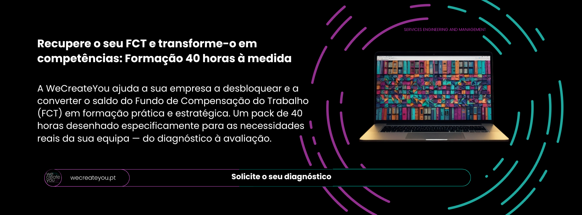 Na WeCreateYou, combinamos talento e experiência em Service Design, Consultoria de Inovação, Gestão, Marketing Digital, Web Design e Formação Profissional, para transformar ideias em soluções concretas e resultados mensuráveis.